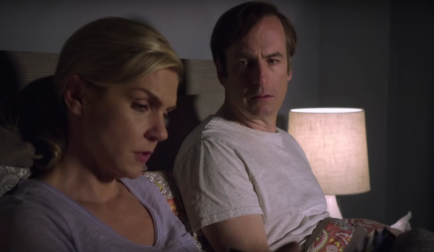 In the later scene of her and Jimmy in bed together, and the palpable coldness that hangs in the air between them, feels like the mirror image of Chuck and his wife sitting in bed, similarly disconnected, in the cold open to “Rebecca.” Chuck’s wife isn’t in the picture anymore, and we don’t yet know why. But that visual rhyme, and Kim’s distant demeanor, suggest that she may not be in Jimmy’s life for much longer either.